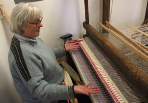 After picking up a loom from an estate sale — she is intrigued by “the mechanics of things,” which drew her to pick up the device — Frieze said she had trouble finding a teacher. She ended up traveling to a school in Marshfield, Vermont to pick up the craft about eight years ago.