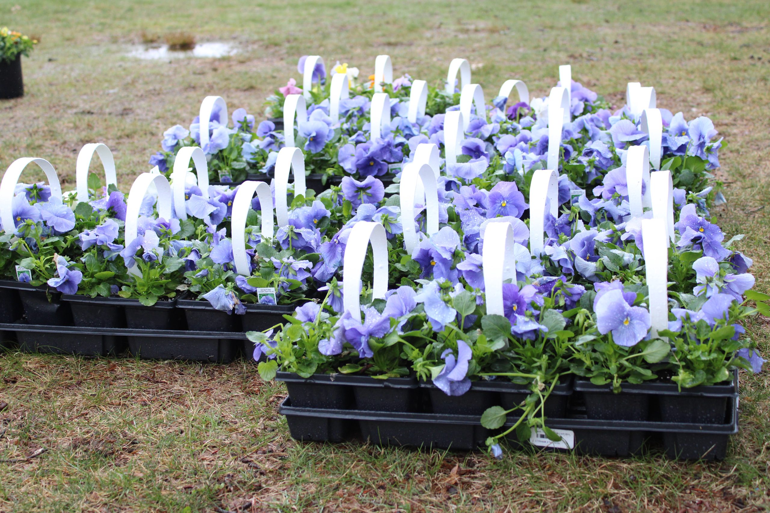 Ahead of Saturday’s Pansy Day, the annual fundraiser for the Needham History Center and Museum, this season’s flower assortment looks to be behind in their growing cycle by about a week or two, said Becky Cook of Needham Garden and Hardware.